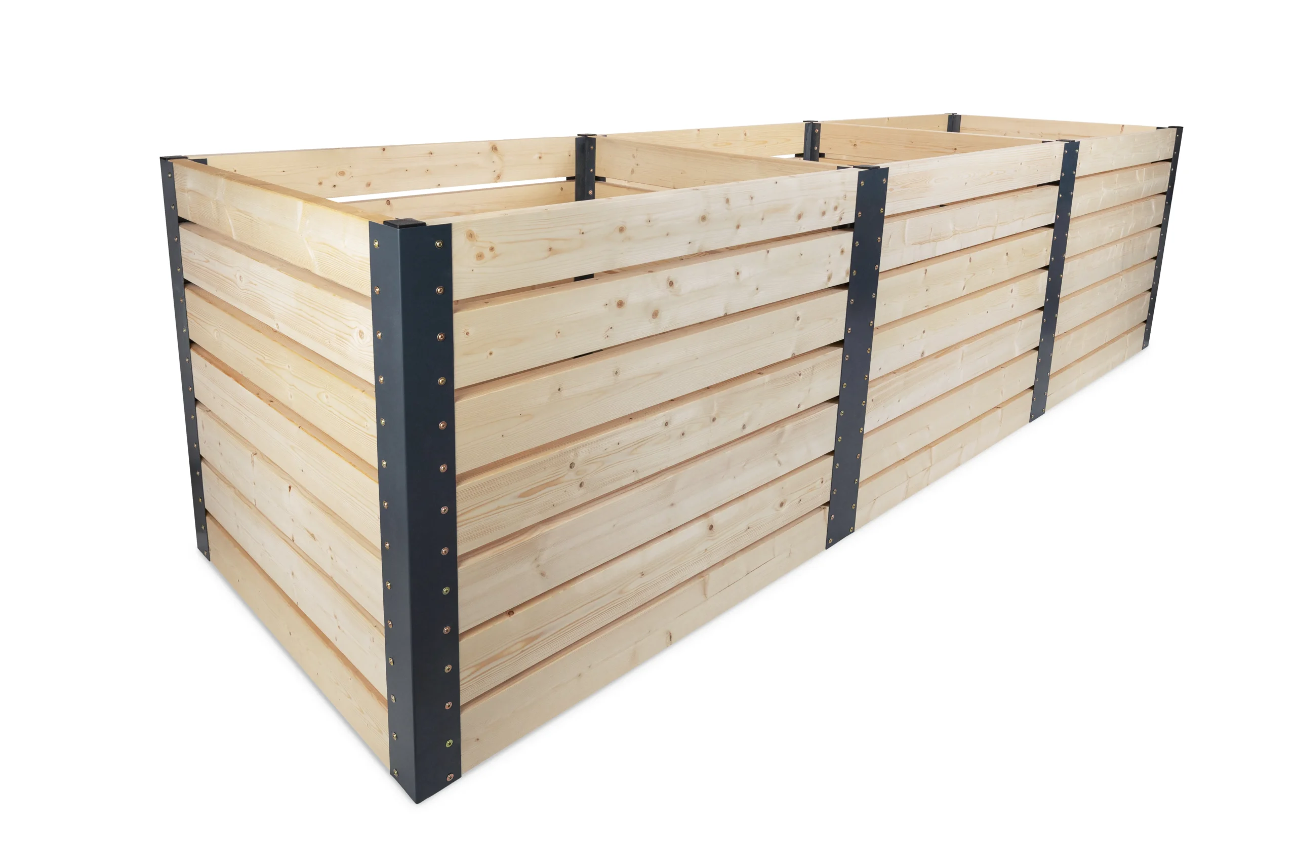Konstrukce je navržená tak, aby držela tvar i při plném zatížení a bez nutnosti kotvení. K montáži potřebujete pouze aku vrtačku. Hodí se jak pro menší zahrady, tak i pro pravidelné kompostování u rodinných domů. Pokud hledáte poctivý dřevěný kompostér, který funguje a vydrží, jste na správném místě.